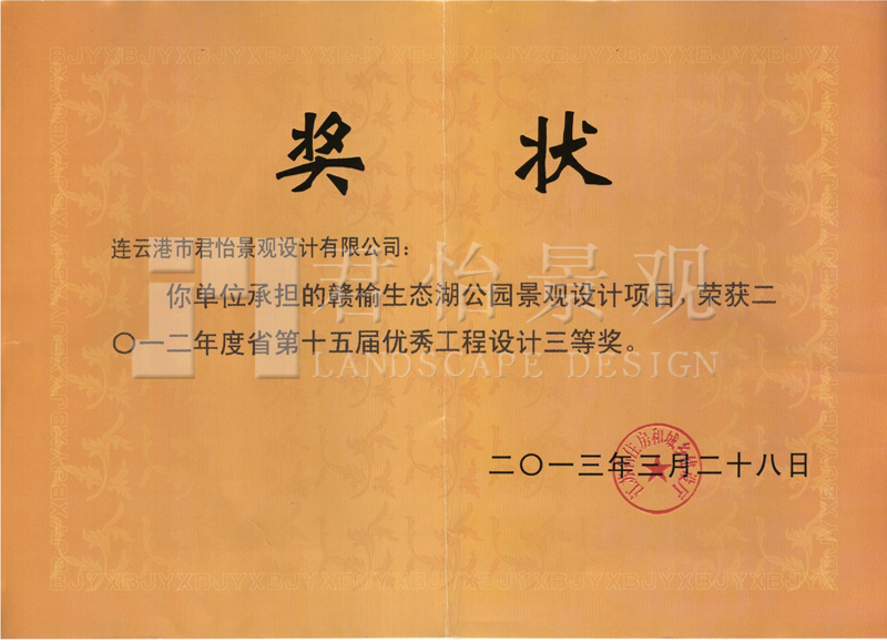 2013年獲獎(jiǎng)證書