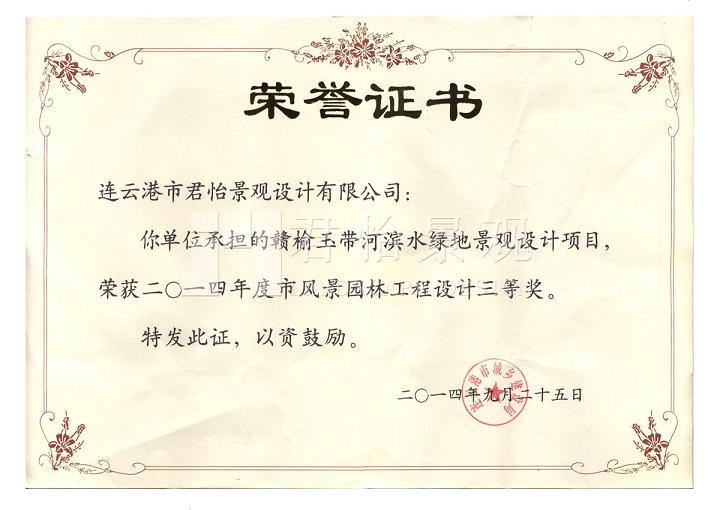 2014年獲獎(jiǎng)證書
